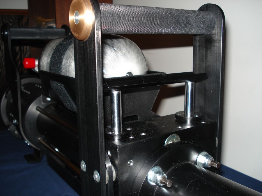 The RET RAM® Battering Ram is a single man hand held breaching device weighing approximately 40 pounds. The Ram carries a self contained high pressure air cylinder and is capable of delivering quick repeatable multiple blows. The ram can be recharged at any fire station, scuba shop or “on site” by portable field compressors.